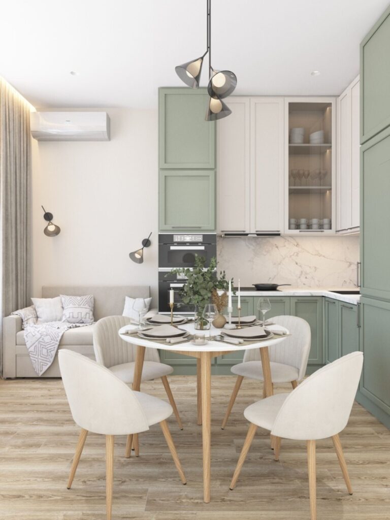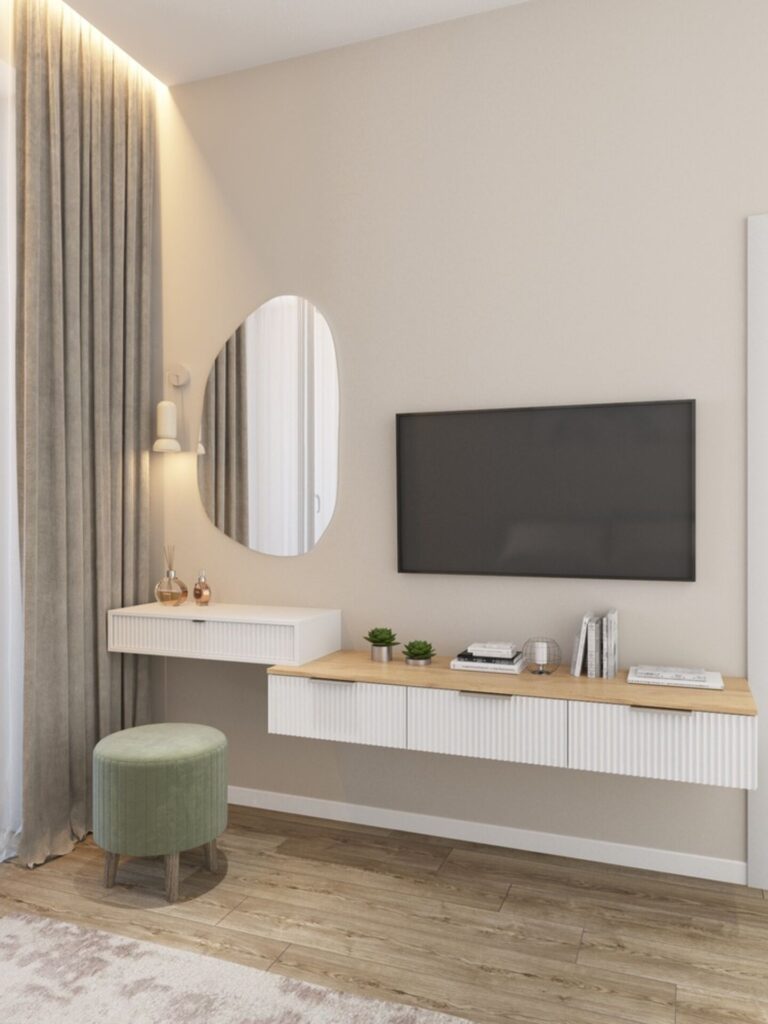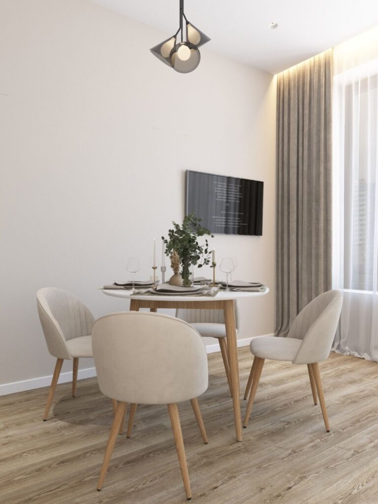Қысқа формалар, функционалдылық, түстердің үйлесімді үйлесімі, текстуралардың әртүрлілігі, кеңдік сезімі және табиғи жарықтың көптігі — заманауи стильдің негізгі ерекшеліктері осы пәтердің дизайнының негізін құрады. Интерьер заманауи және ыңғайлы ғана емес, сонымен қатар шын мәнінде эстетикалық болып шықты.
