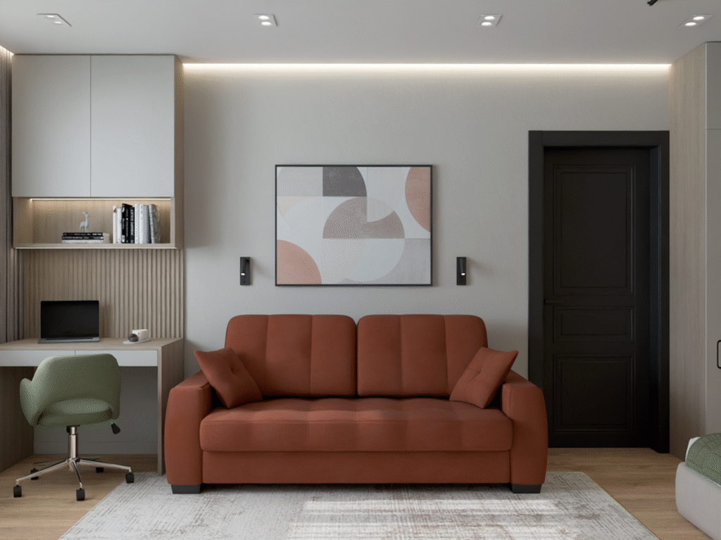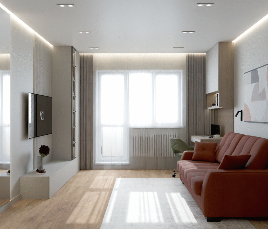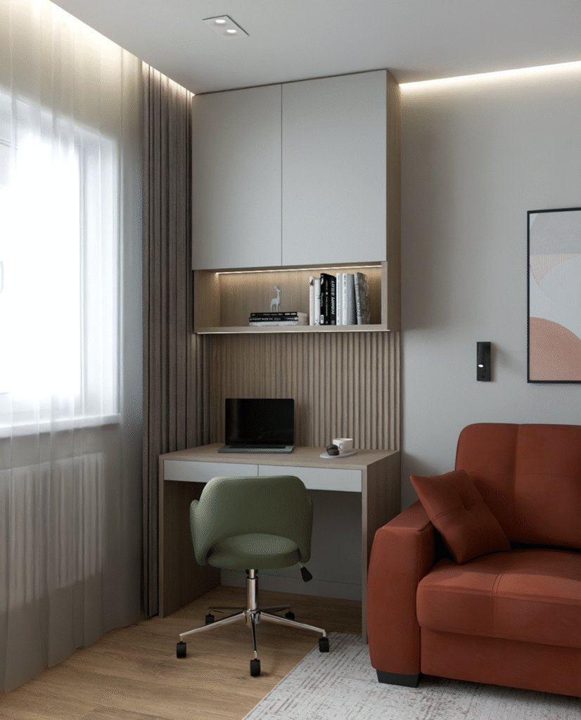 В этом дизайн-проекте ярко выражены ключевые принципы стиля контемпорари: чистота линий, продуманная функциональность, сдержанная цветовая палитра, игра текстур и ощущение простора благодаря обилию естественного света. Интерьер выглядит стильно, современно и при этом остаётся максимально удобным для жизни.